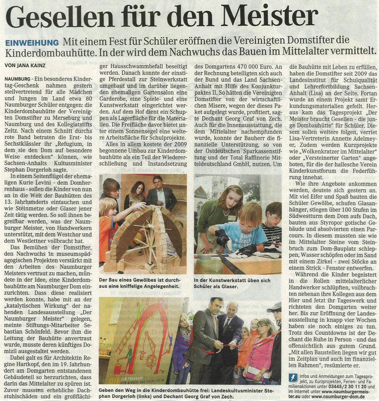 In der wird dem Nachwuchs das Bauen im Mittelalter vermittelt. Mitteldeutsche Zeitung, Februar 2011Sechs Tage bis zur PremiereKinder aus der Montessori-Schule Naumburg waren eingeladen zu einem